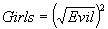 First we state that girls require time and money. As we all know, "time is money." Therefore: And because "money is the root of all evil": It follows: And we can thus conclude that: Women are evil ;-) b